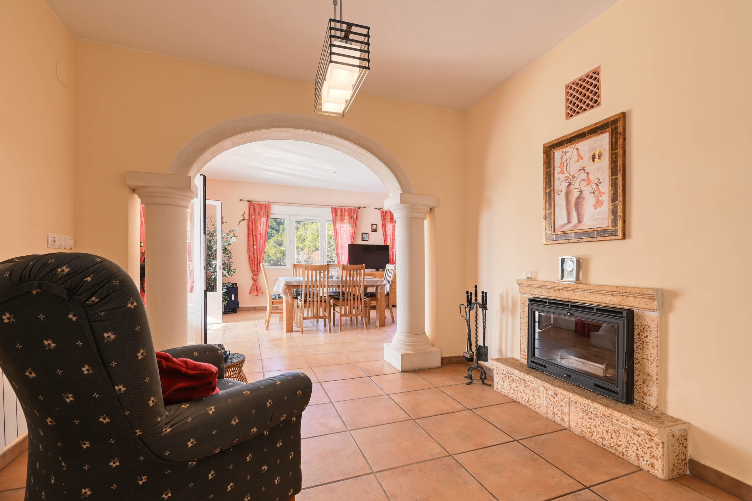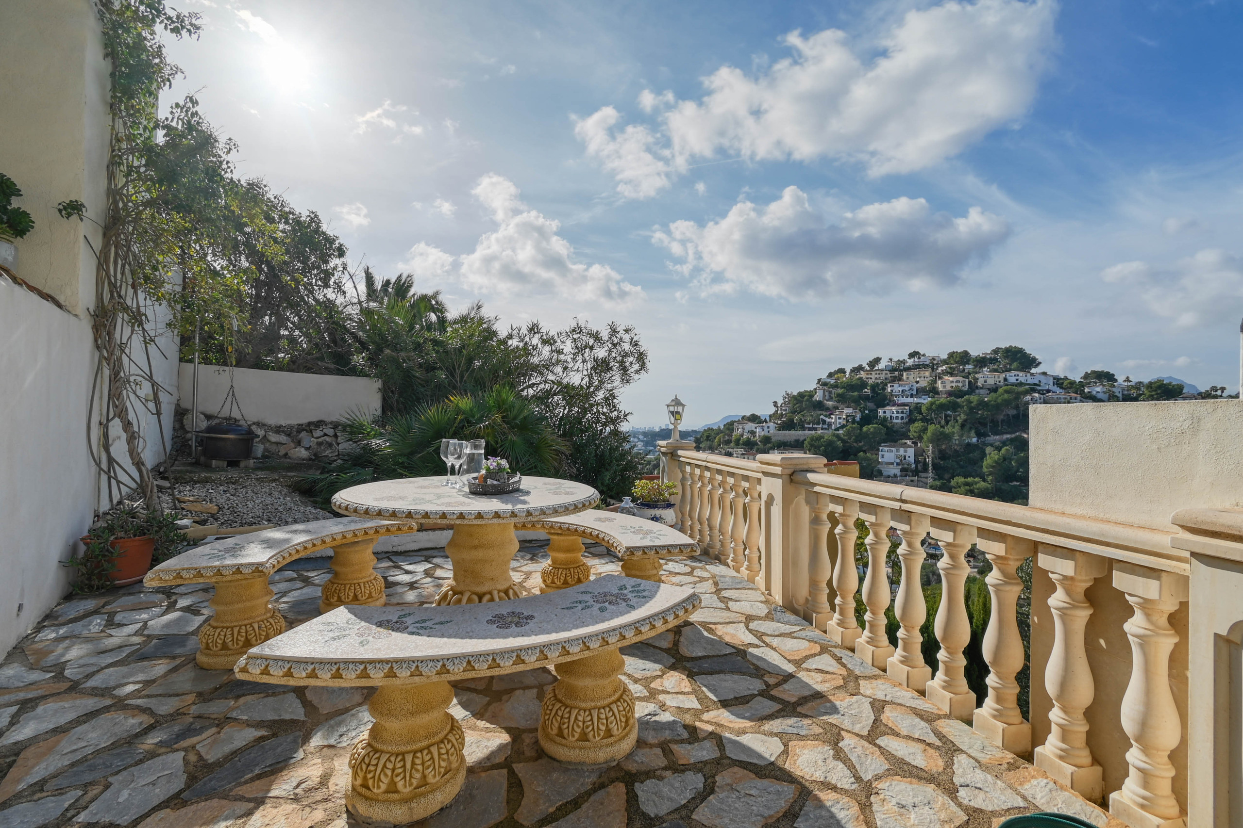 The property is located 2 km from Golf Ifach golf course, 2 km from the coffee shop, 2 km from Pepe Supermarket supermarket, 3 km from the rock beach, 4 km from Ampolla Beach Moraira sand beach, 4 km from Moraira city, 4 km from Moraira Family Park amusement park / theme park, 4 km from Moraira park, 12 km from Ifach nature reserve, 13 km from Calpe Bahnhof bus station, 30 km from La Xara Denia hospital, 90 km from Flughafen Alicante international airport, 90 km from Flughafen Alicante airport. The house is situated in a family-friendly neighborhood in a suburb.