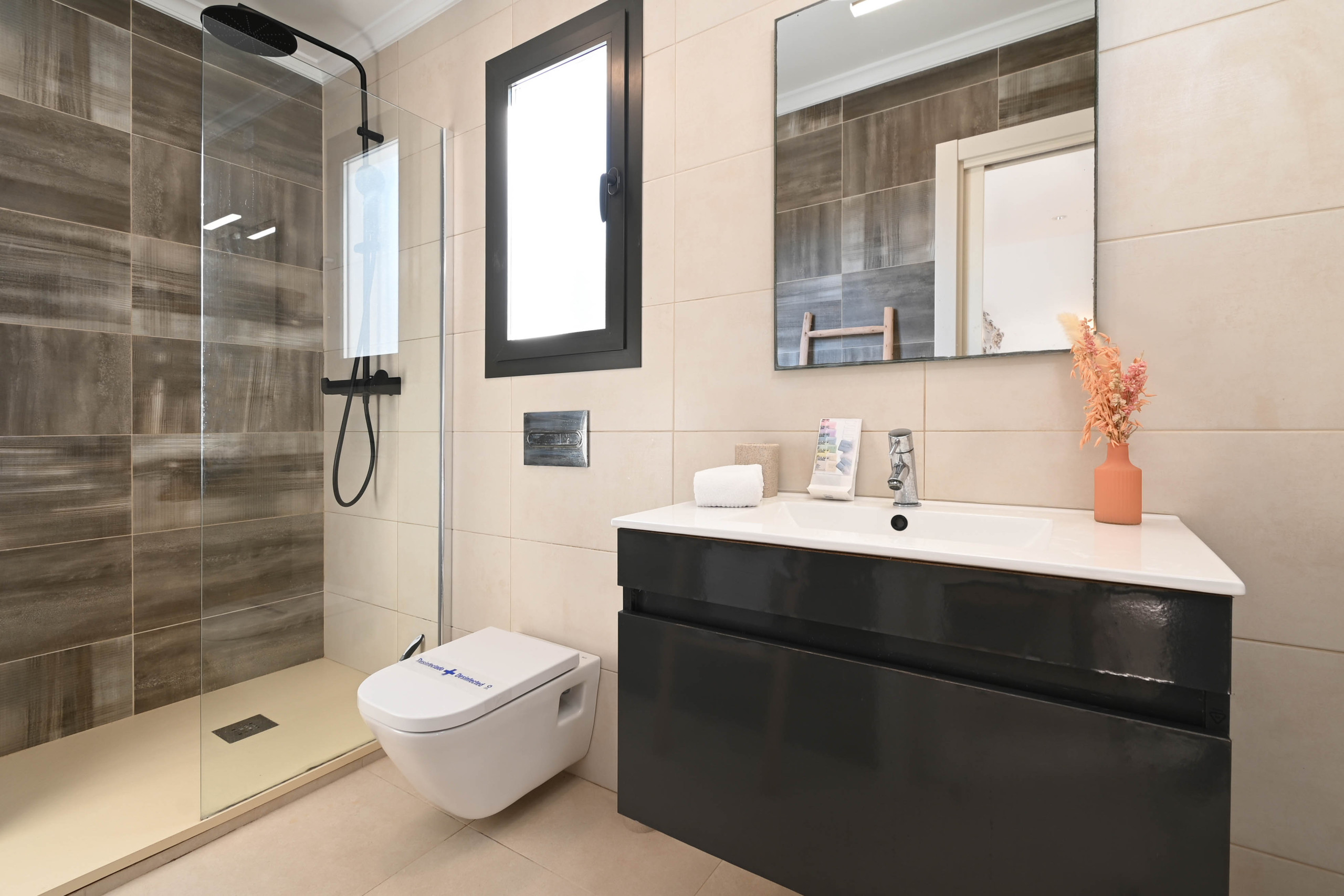 The bedrooms are true oases of well-being: all of them have king-size beds, air conditioning that heats and cools. Two bedrooms offer en-suite bathrooms, one with bathtub, all with shower and toilet. Two additional modern bathrooms with showers ensure that all guests feel comfortable and with a private bathroom for each bedroom.